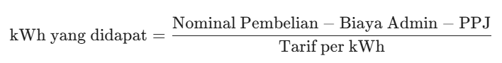 Untuk mengetahui jumlah kWh yang didapat, Anda perlu memahami bahwa nominal Rp50.000 tersebut tidak semuanya dikonversi menjadi listrik. Ada potongan biaya terlebih dahulu. Rumusnya adalah: